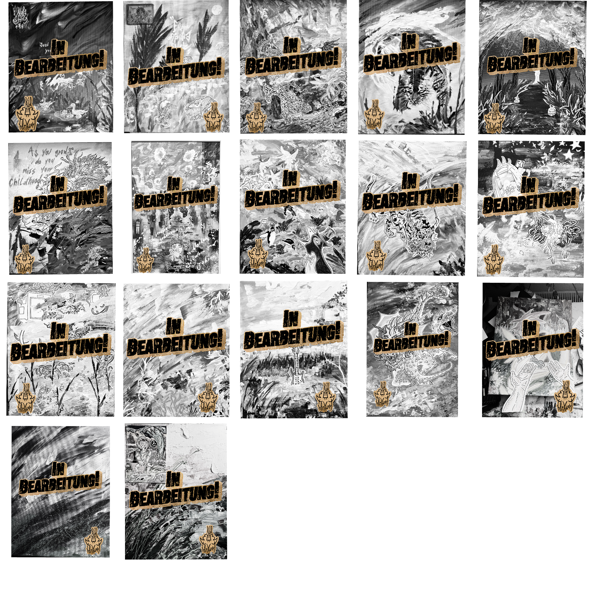 Mixed Media auf 40x50 Original Leinwände und Monumentale Einzelwerke auf Rahmenbilder oder Pappe.